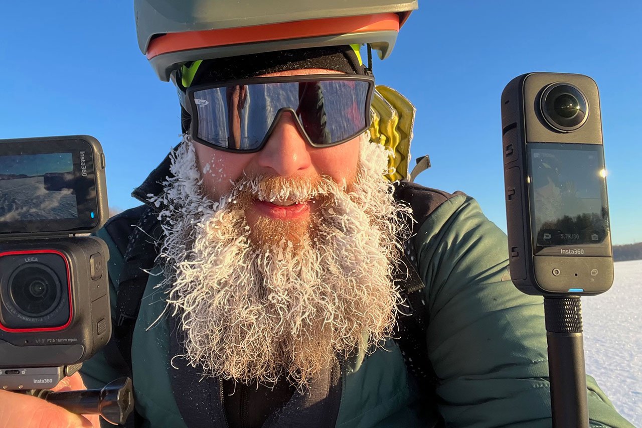 Kuvauskaluston muodostavat action-kamera, 360-kamera, puhelin ja drone. Raskaan järjestelmäkameran sijaan hän ottaa mieluummin nokipannun ja toisinaan tuoreet soppa-ainekset.
