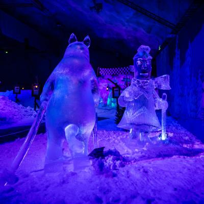 Leppävirran jääluolassa voi ihastella Muumeja heinäkuun loppuun asti.