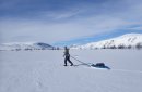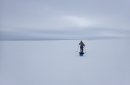 Pari tuntia tuntui kuin olisimme Grönlannissa tai navalla. Joka puolella oli pelkkää valkoista, loppumatonta lumikenttää 360 astetta. Termisvaaran eteläpuolisessa satulanotkossa ei näy yhtäkään kauempaa tunturia eikä ensimmäistäkään tummaa kiveä.