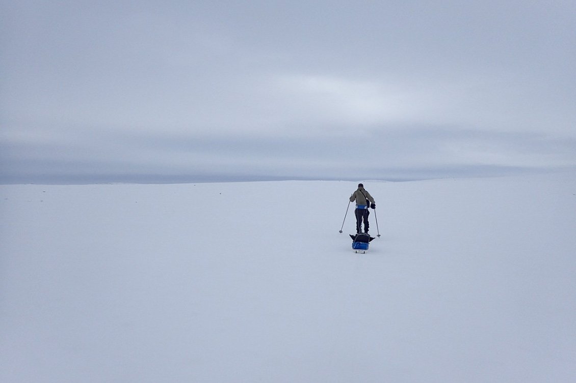 Yritimme hiihtää alustaa kiinni, mutta se oli toivotonta. Aikoinaan eräopaskurssilla opettaja varoitti päästämästä tavaroista tuulella irti. Hän lanseerasi sanonnan, että jos rukkanen pääsee karkuun, se löytyy Muonion apteekin seinästä. Sinne suuntaan makuualusta oli matkalla.