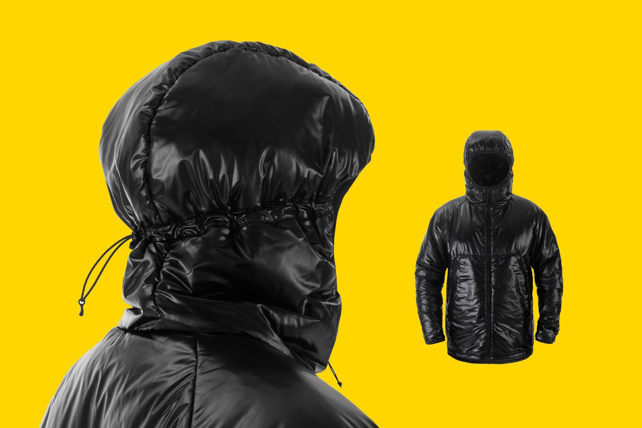 Tulee väkisin mieleen, että takissa on ripaus slaavilaista kiiltoa, mutta enemmän kuin muodista, kysymys on ultrakevyen ripstop-kankaan ominaisuuksista. Ohuet synteettiset langat ja kankaan viimeistely heijastavat kuin peili. Joku muu väri näyttäisi vähemmän jätesäkiltä, mutta kevytretkeilyssä mennään toiminnallisuudet edellä.
